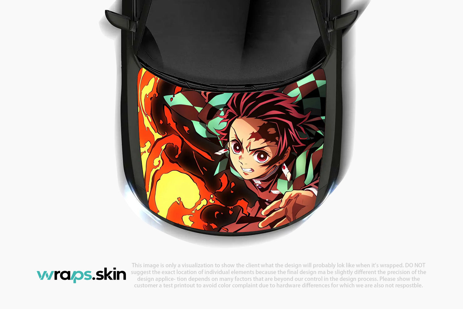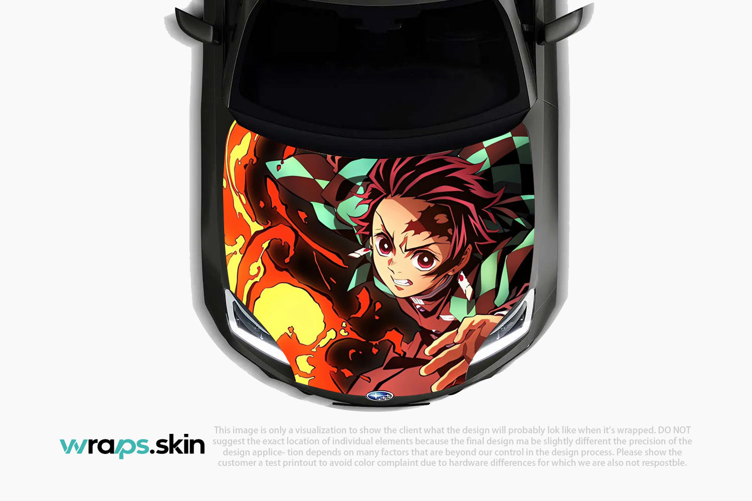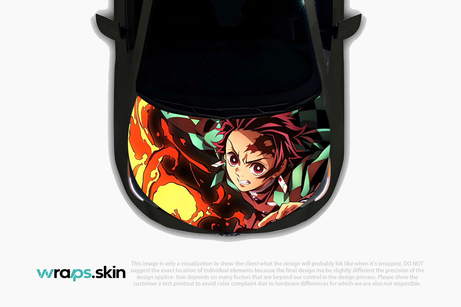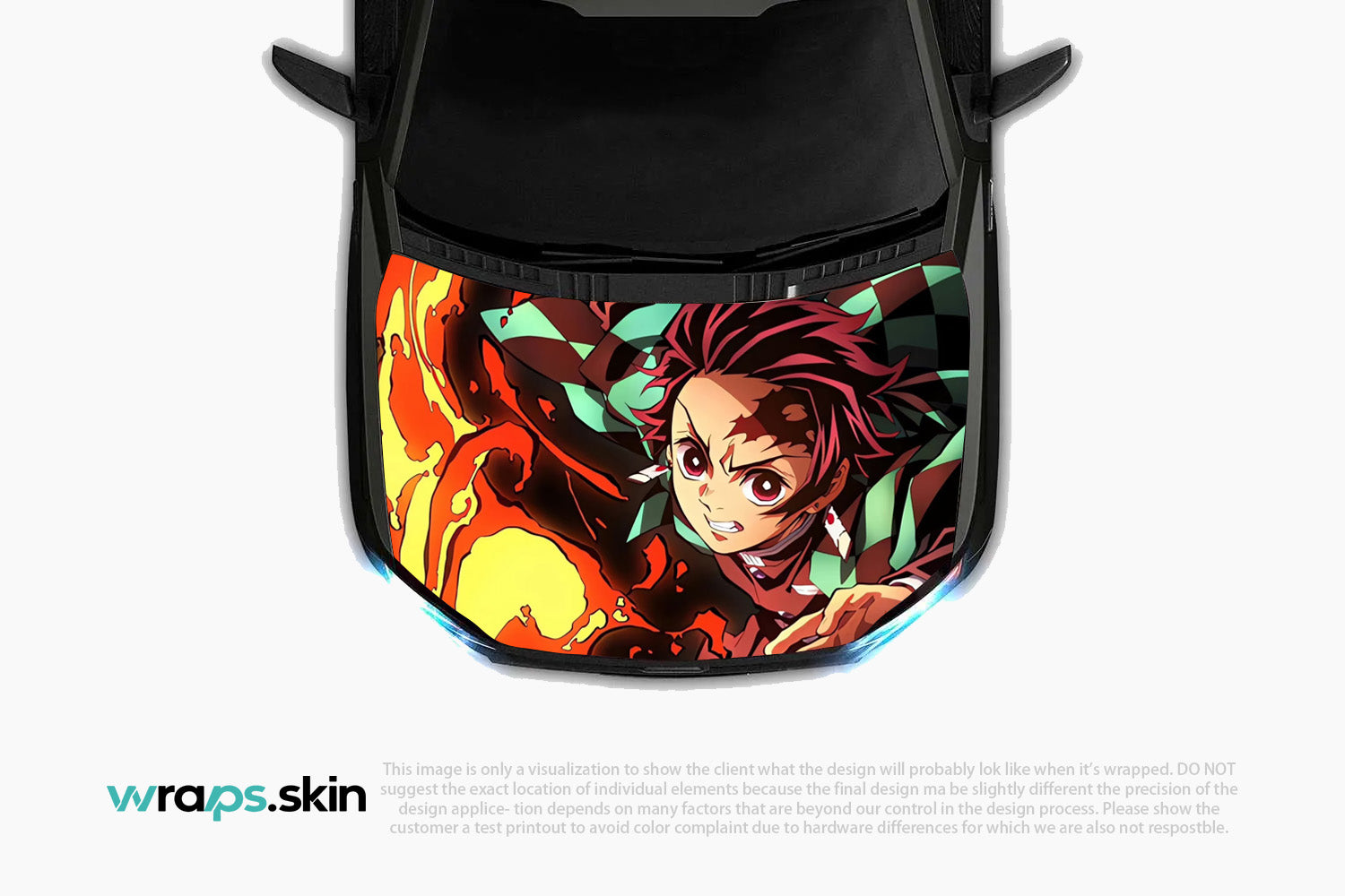 Ignite your passion with this dynamic custom hood wrap featuring a determined young warrior with fiery burgundy hair and distinctive checkered patterns. Set against a backdrop of roaring flames, this powerful design captures the unwavering spirit of a demon hunter who fights with both blade and breath techniques, embodying the eternal struggle between light and darkness in feudal Japan. Note: Final positioning may vary to achieve optimal results.