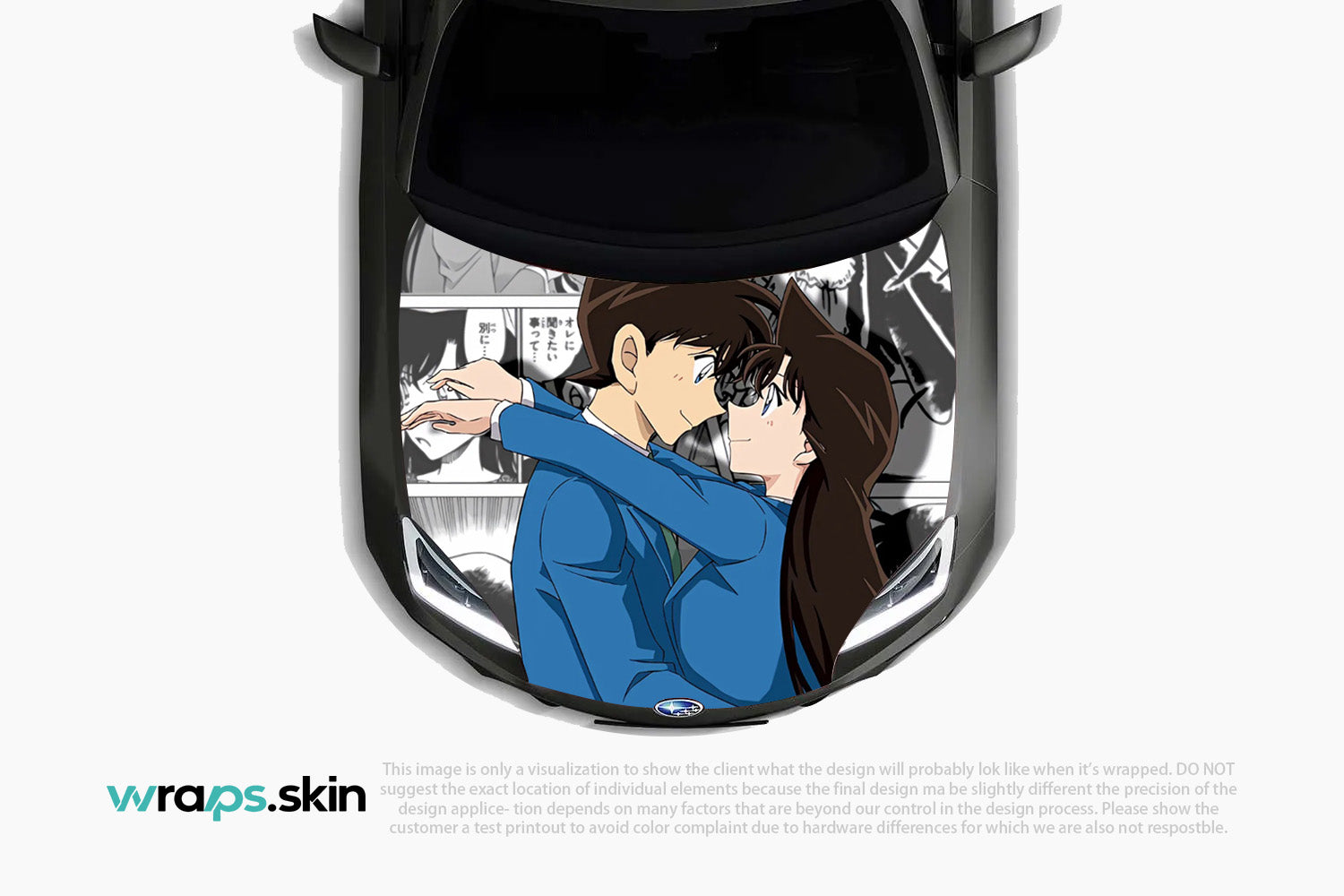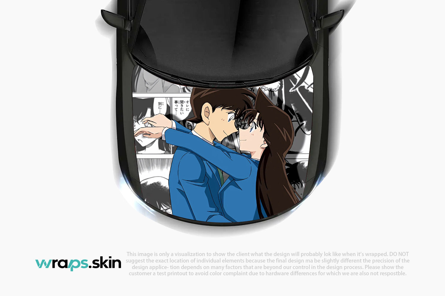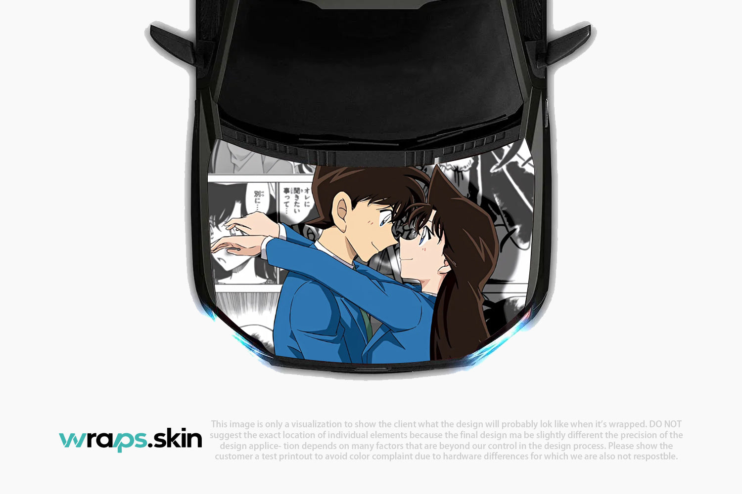 Embrace the tender moments with our Detective Romance premium custom hood wrap. This heartwarming design showcases a touching scene between two beloved characters - a brilliant young investigator in his signature blue suit and his devoted companion with flowing chestnut hair. Set against a backdrop of manga panels depicting their shared adventures and mysteries, this artwork captures the essence of enduring love that transcends time and circumstance. Our custom-to-order service transforms your appreciation for timeless romance and detective tales into automotive artistry that celebrates the power of connection and devotion. Note: Final positioning may vary to achieve optimal results.