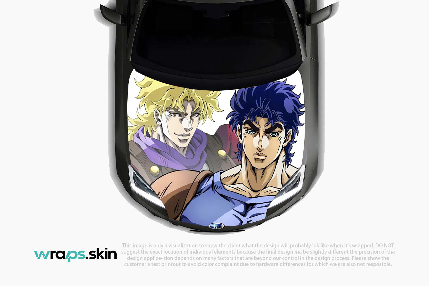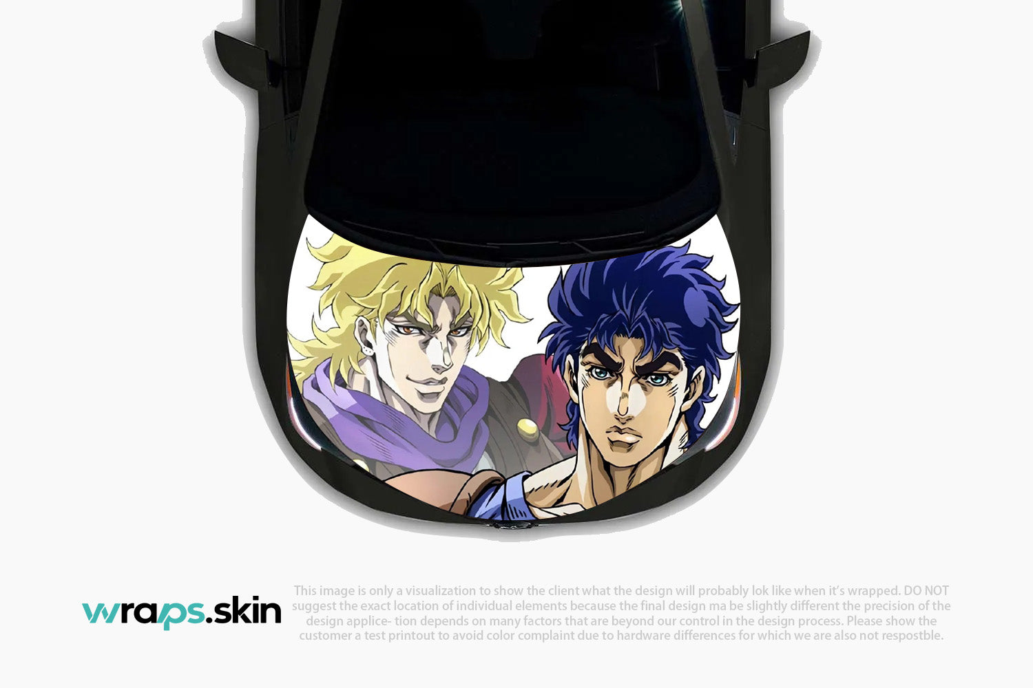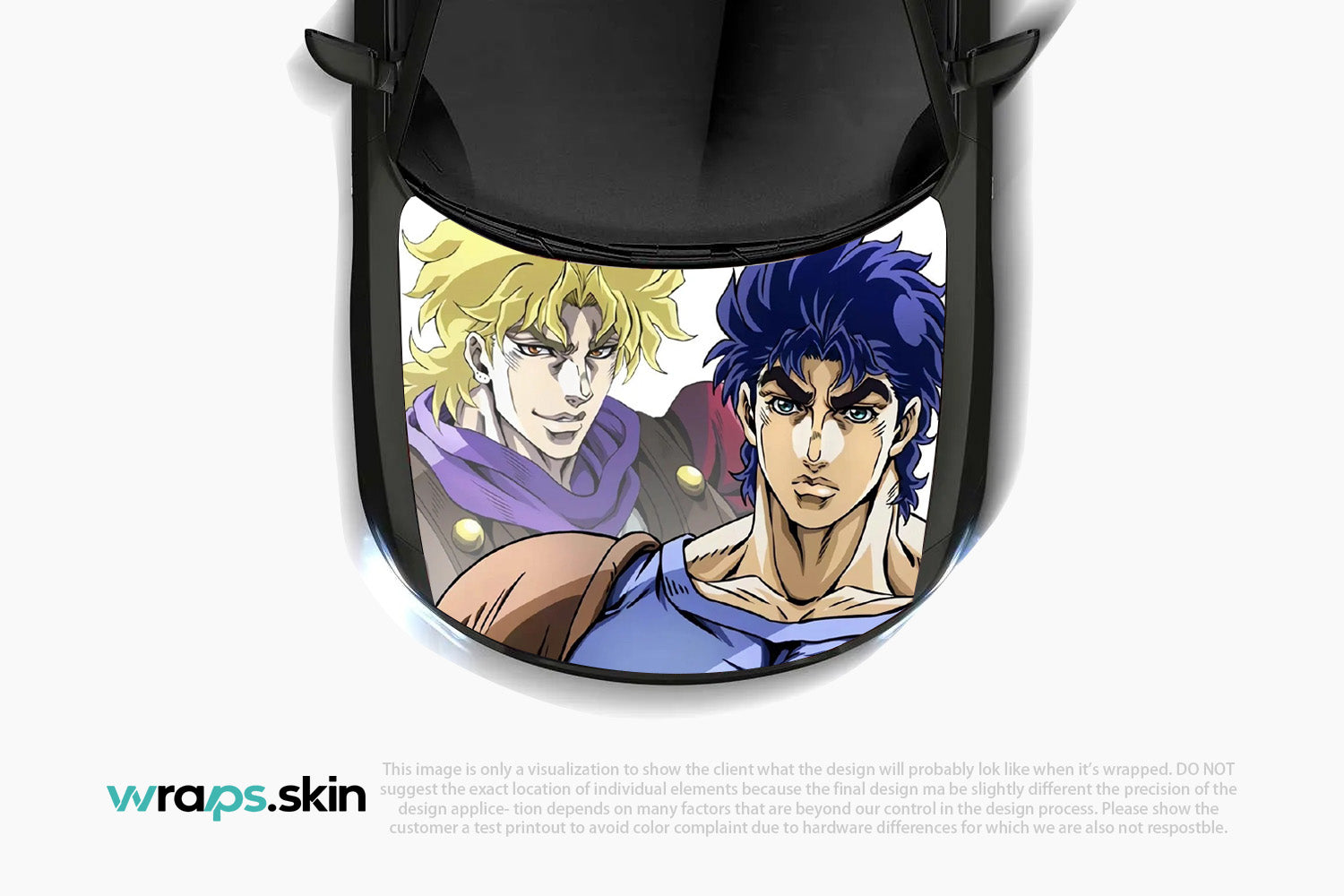 Witness the clash of destinies with our Golden Rivalry premium custom hood wrap. This striking design showcases two formidable warriors locked in eternal conflict - a golden-haired champion with piercing gaze and aristocratic bearing, facing off against his dark-haired rival with intense blue locks and unwavering determination. The artwork captures the dramatic tension between light and shadow, nobility and rebellion, rendered in bold manga artistry that celebrates the timeless appeal of legendary feuds. Our custom-to-order service brings this epic confrontation to life on your vehicle with unmatched precision and style. Note: Final positioning may vary to achieve optimal results.