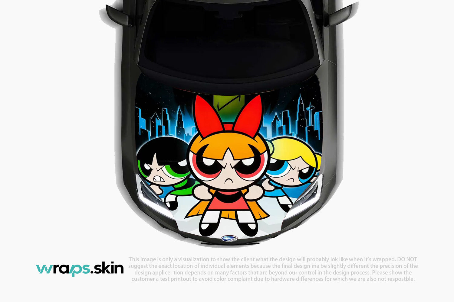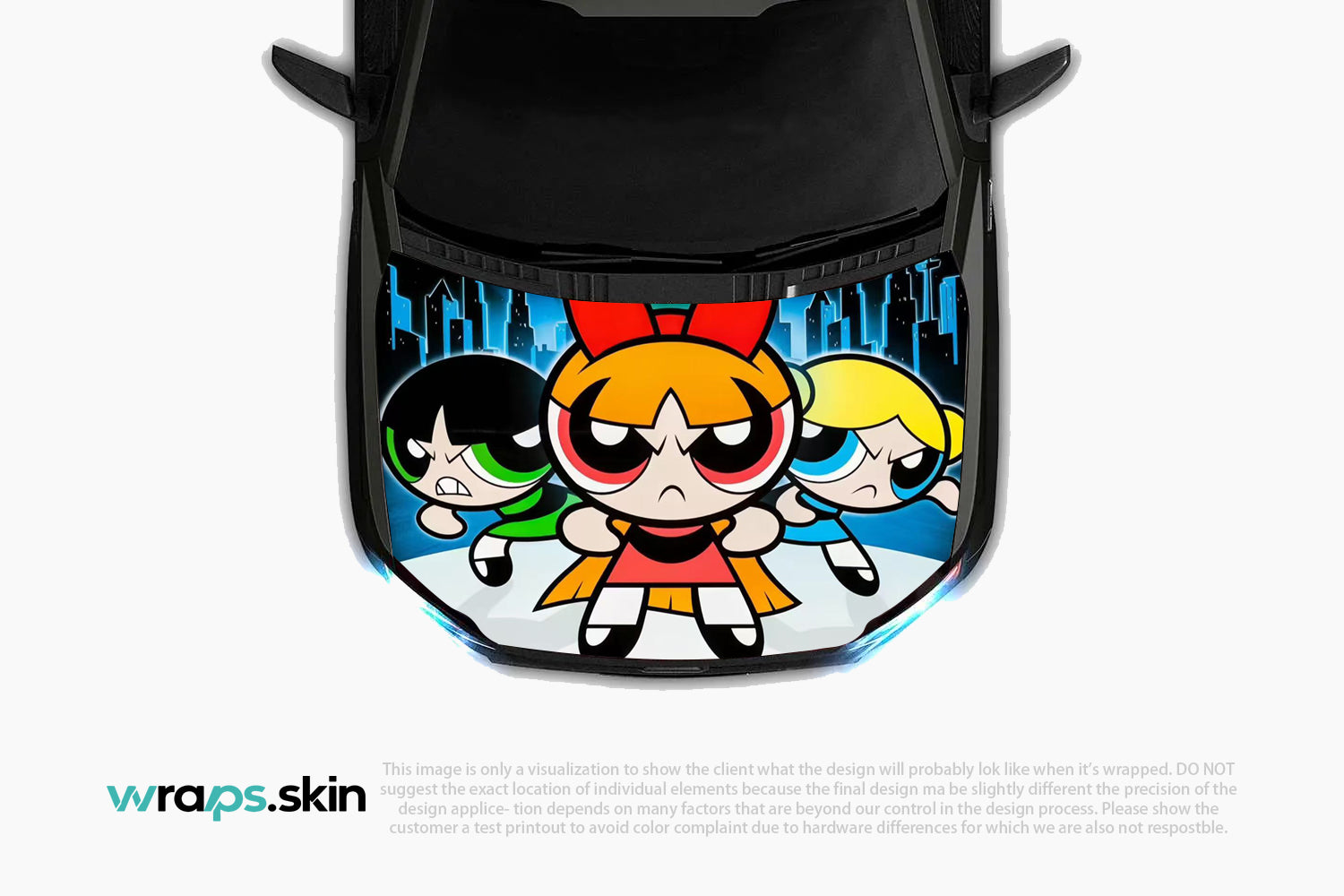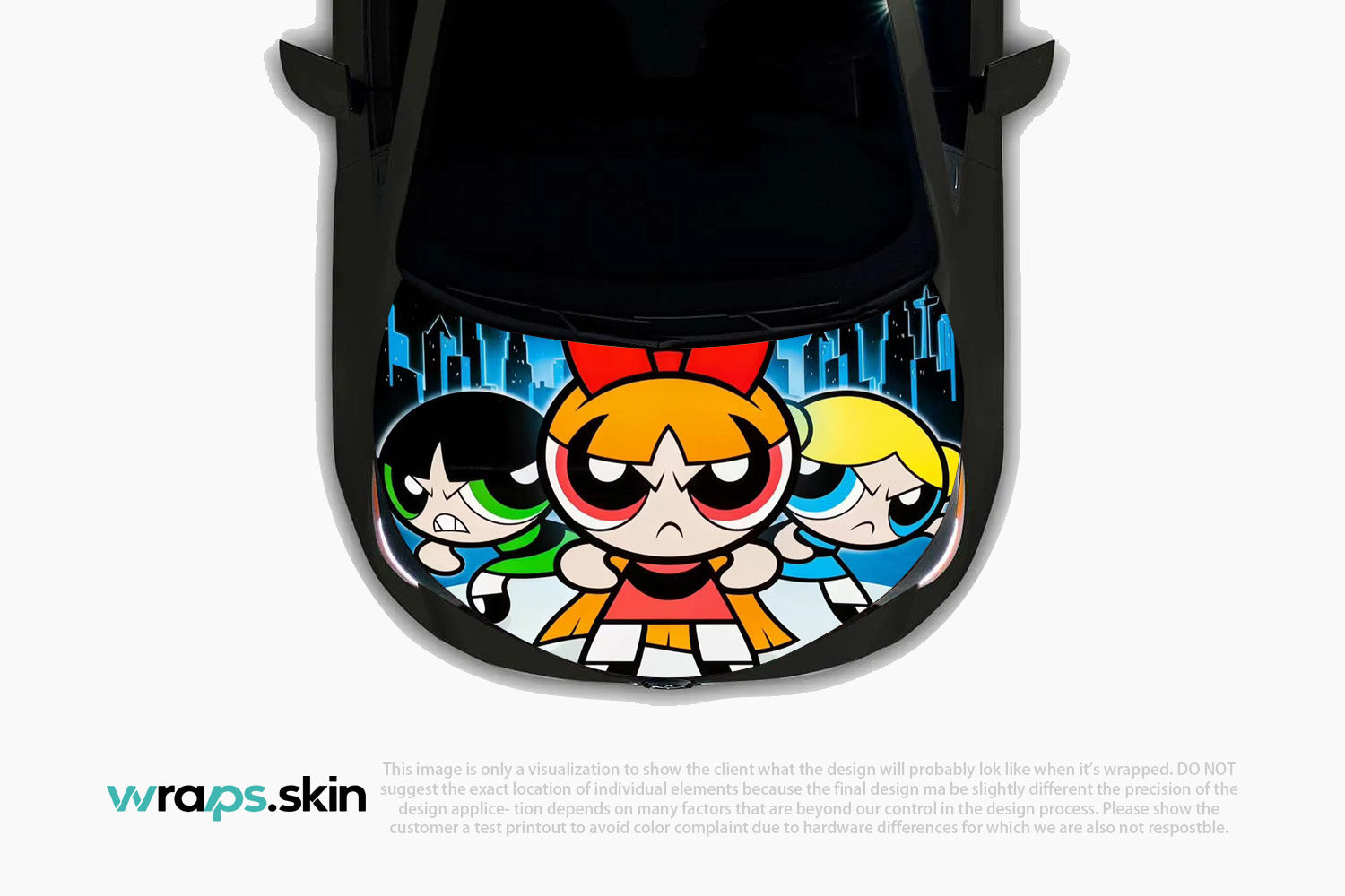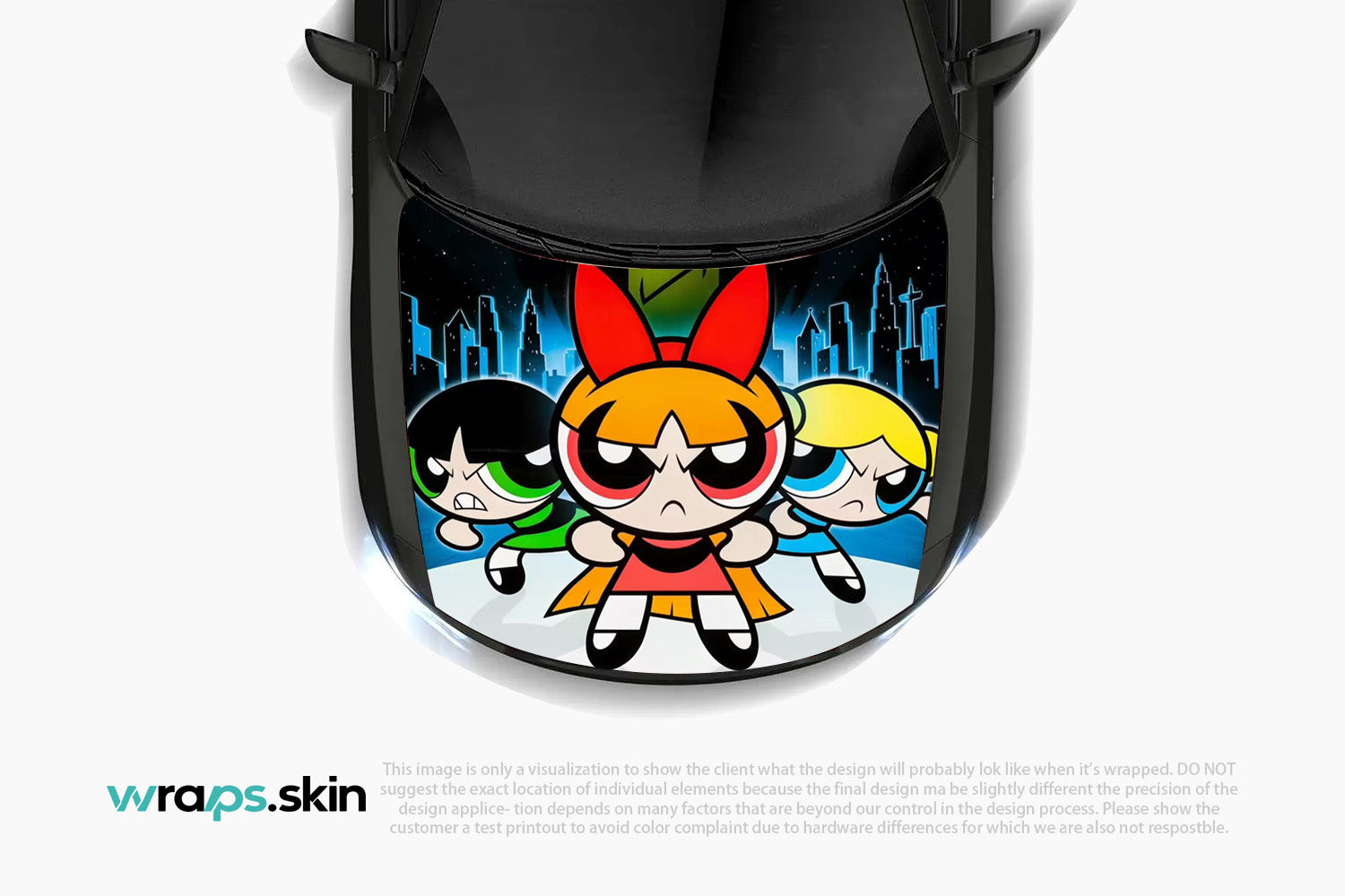 Stand ready to protect with our premium custom anime character hood wraps featuring the heroic trio of young defenders from the legendary tales of urban protection and metropolitan heroism. This powerful design showcases the three determined champions in their classic heroic stance against the dramatic backdrop of a towering city skyline, with the orange-clad leader at the center flanked by her loyal companions in green and blue, all ready to spring into action to defend their beloved metropolis from any threat that dares to challenge the peace. Our exceptional wrapping service brings the most inspiring superhero adventures directly to your vehicle with bold urban aesthetics and commanding presence. Each design is expertly crafted using advanced automotive film technology that delivers striking cityscape details, vibrant character colors, and exceptional surface durability. Whether you're inspired by tales of urban heroism, the responsibility of protecting others, or the timeless appeal of characters who stand as beacons of hope in the modern world, we create wraps that embody the courage to defend what matters most and the unwavering spirit of metropolitan guardians. Note: Final positioning may vary to achieve optimal visual impact and ensure perfect fitment on your specific vehicle model.