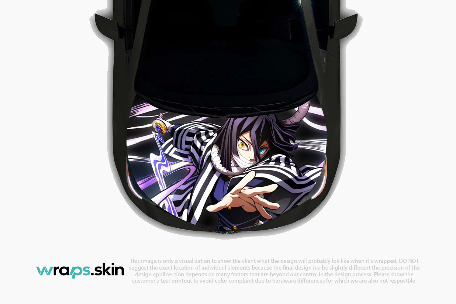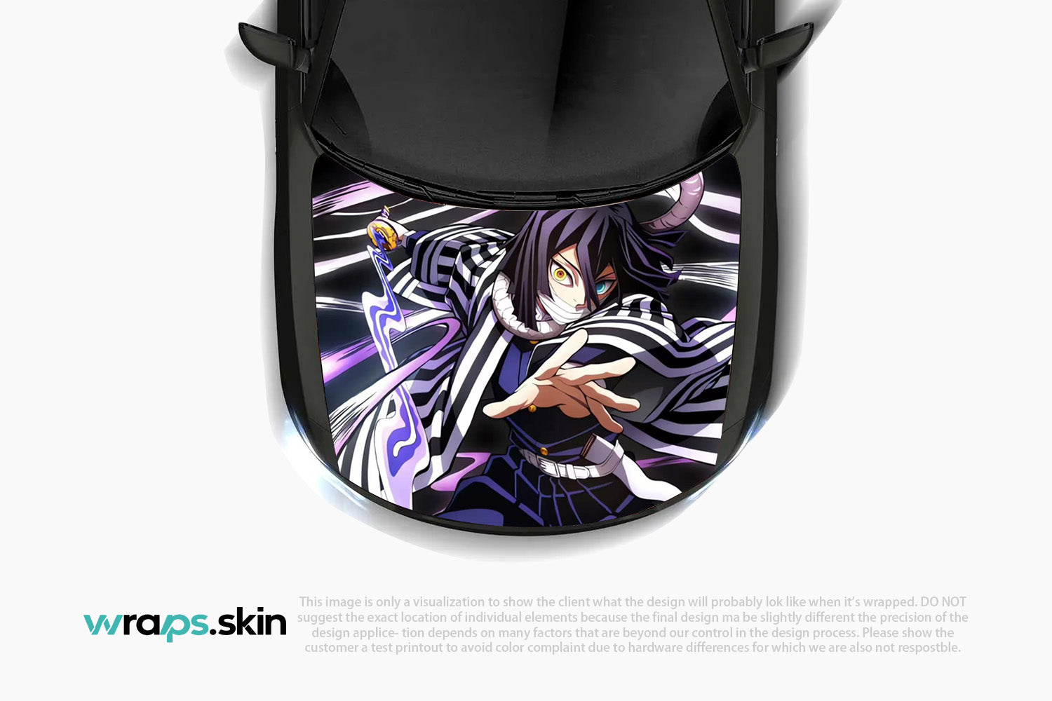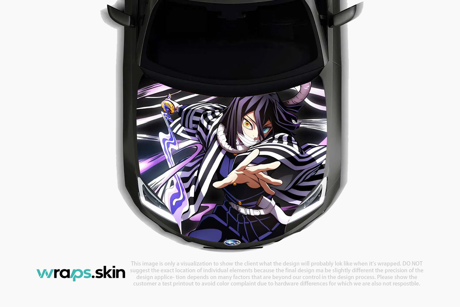 Discover the mesmerizing artistry of this striking custom hood wrap featuring a mysterious warrior with raven-black hair and captivating heterochromatic eyes that gleam with golden amber and turquoise intensity. Adorned in distinctive black and white striped robes that mirror his enigmatic nature, this serpentine master commands the ancient art of coiling combat techniques, surrounded by sinuous purple energy that flows like mystical serpents through the shadows. Note: Final positioning may vary to achieve optimal results.